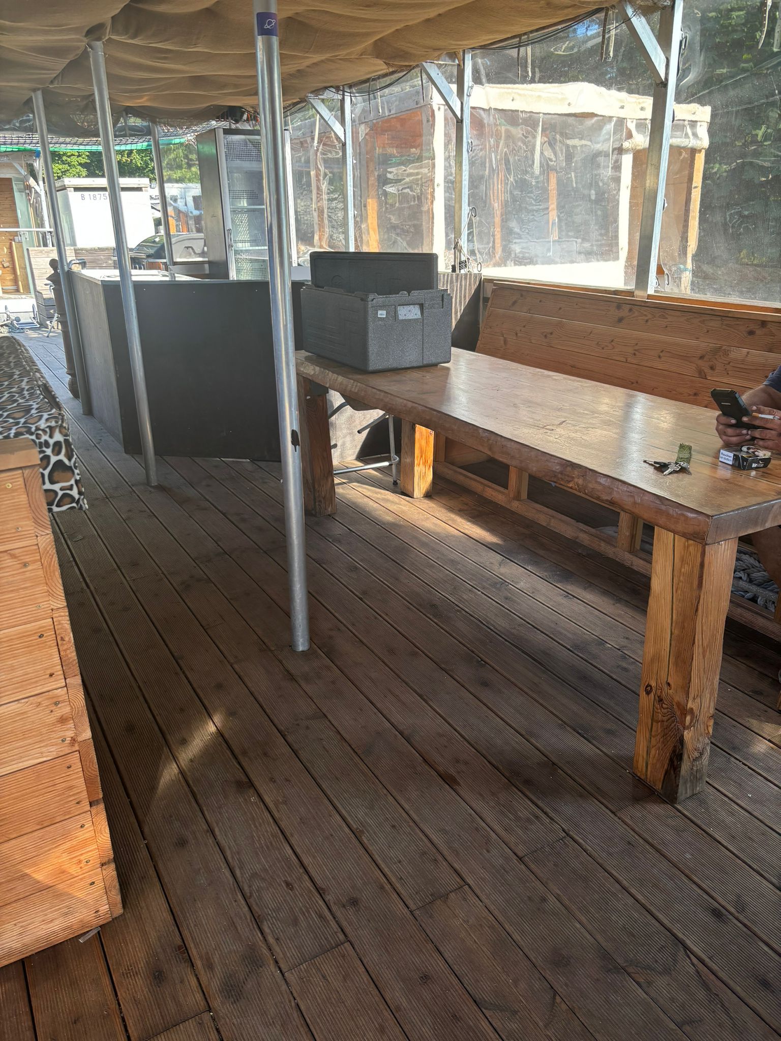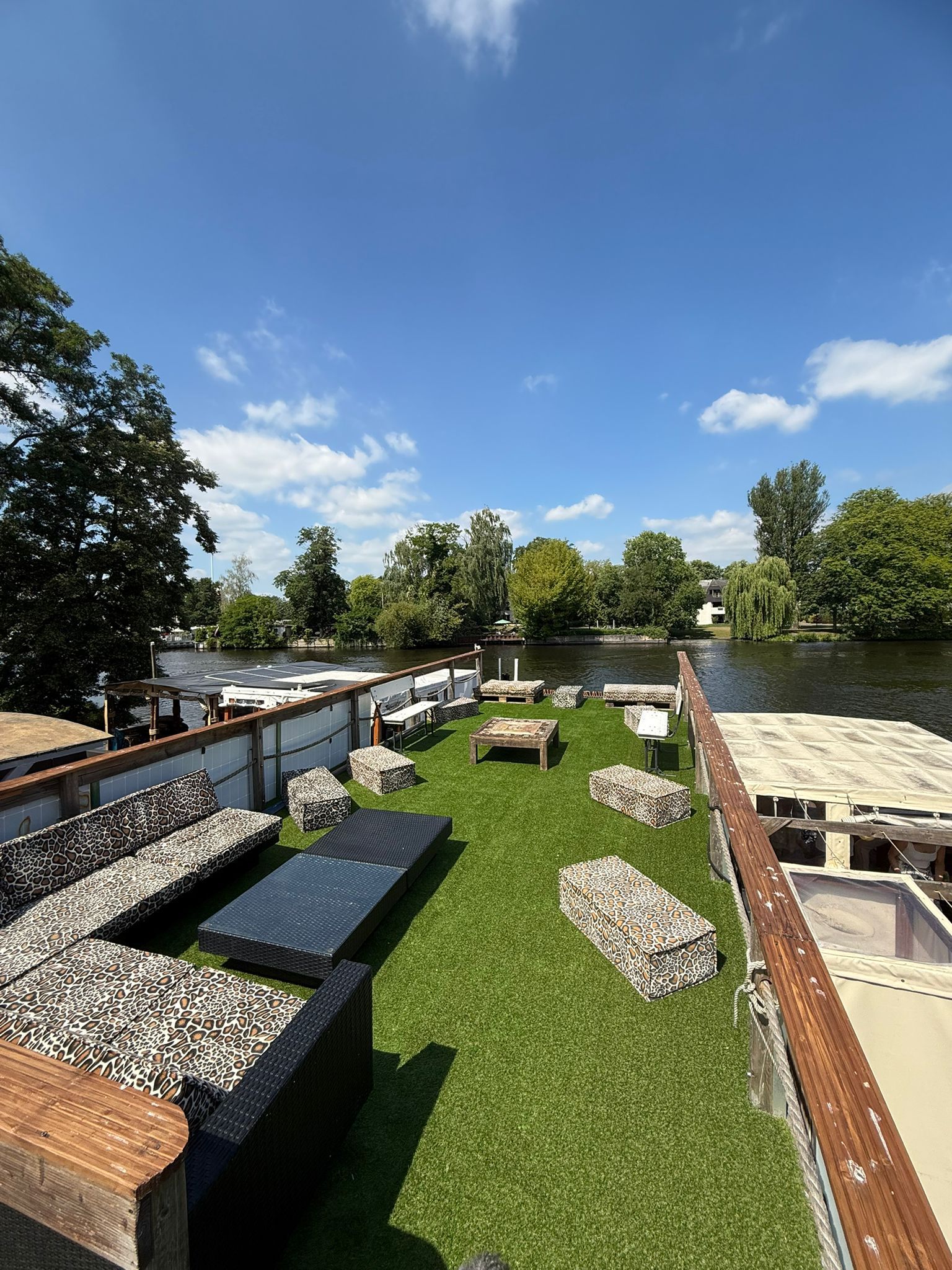 Geht an Bord unseres großzügigen Doppeldeck-Floß und erlebt eure Zeit auf dem Wasser aus zwei Perspektiven. Mit Platz für bis zu 35 Personen ist dieses Floß ideal für größere Gruppen – perfekt für Feiern, Ausflüge oder entspannte Stunden mit Freunden, Familie oder Kollegen. Ein besonderes Highlight ist das zweite Deck: Auf dem Dach könnt ihr die Sonne genießen, den Ausblick wirken lassen oder einfach gemeinsam entspannen. Der untere Bereich bietet zusätzlich geschützte Sitzmöglichkeiten und sorgt so für Flexibilität bei jeder Wetterlage. Die Ausstattung ist auf Komfort und praktische Nutzung ausgelegt: Zwei Getränkekühlschränke sowie ein integrierter Edelstahl-Kühltresen sorgen für jederzeit gekühlte Getränke. Ergänzt wird das Ganze durch eine vollwertige Bordtoilette. Ein Grill inklusive Gas und Grillzange ermöglicht es euch, gemeinsam zu grillen und den Tag kulinarisch abzurunden.